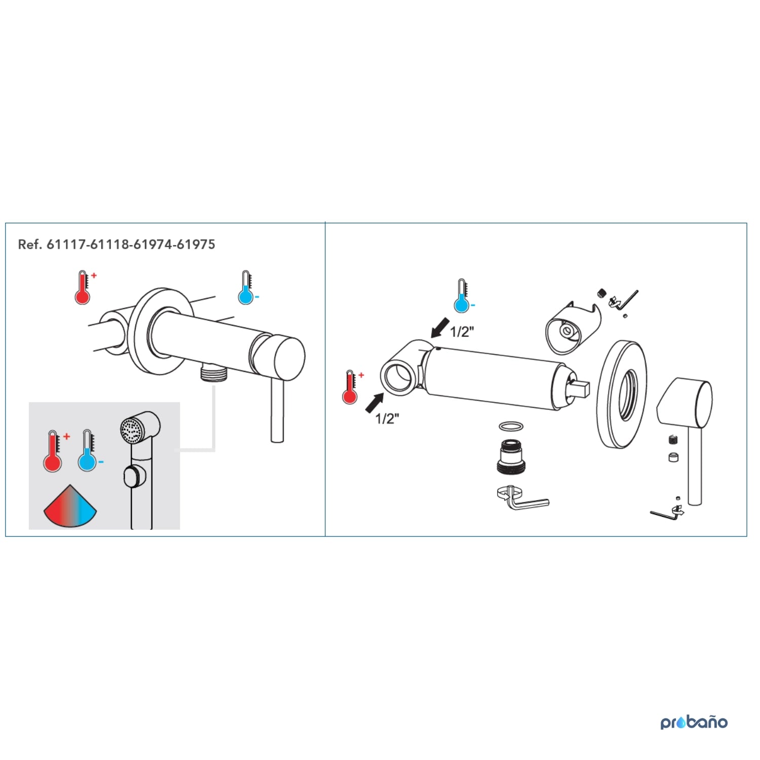 La ducha higiénica empotrada Toubkal tiene un diseño moderno y funcional que encaja a la perfección en baños modernos, minimalistas e incluso de aspecto rurales. Se usa junto al water y sustituye el bidé, que es muy poco habitual verlo actualmente en baños nuevos. El diseño del mezclador que se debe incrustar en la pared del baño, permite colgar la ducha directamente del mismo, ya que el soporte está incorporado en la pieza central.