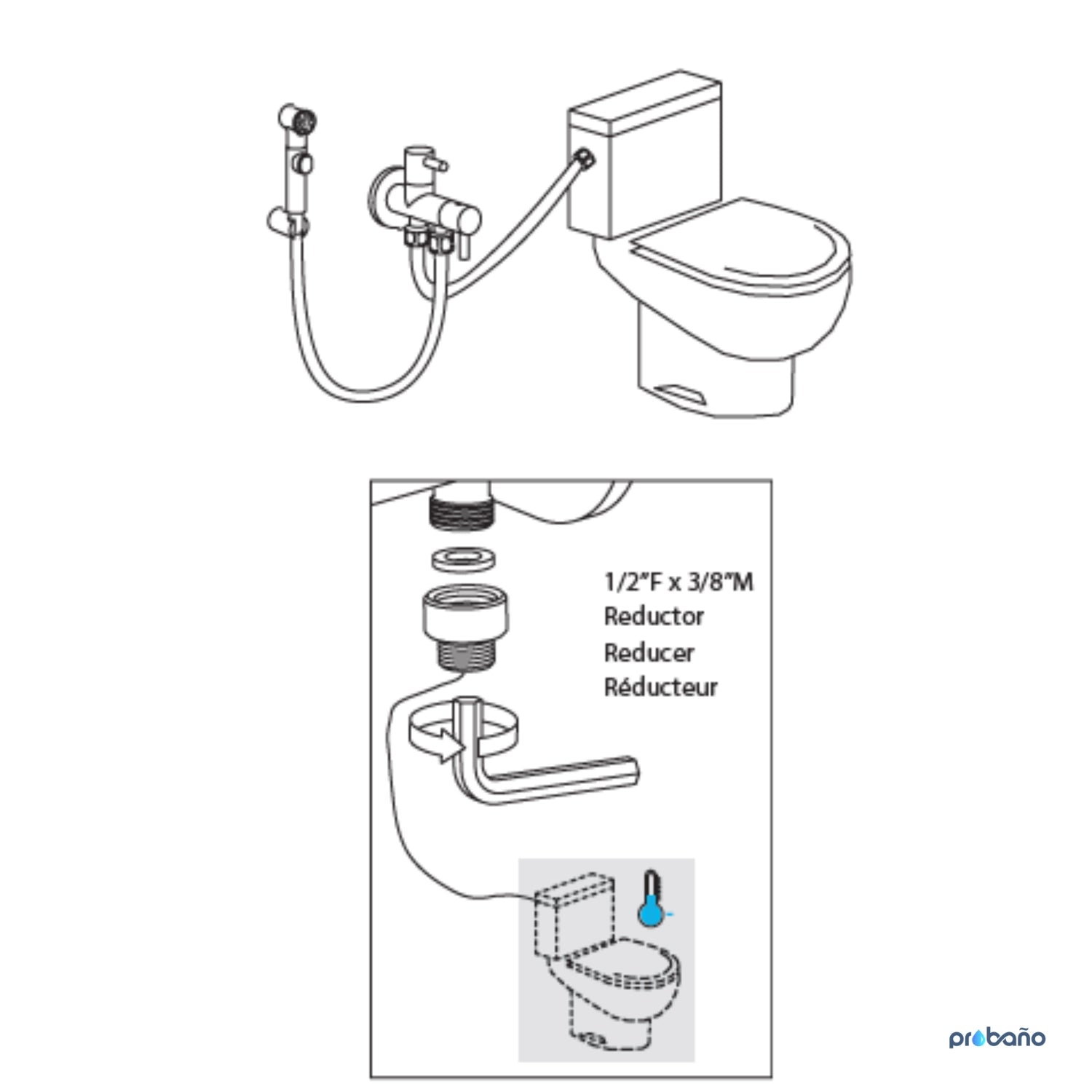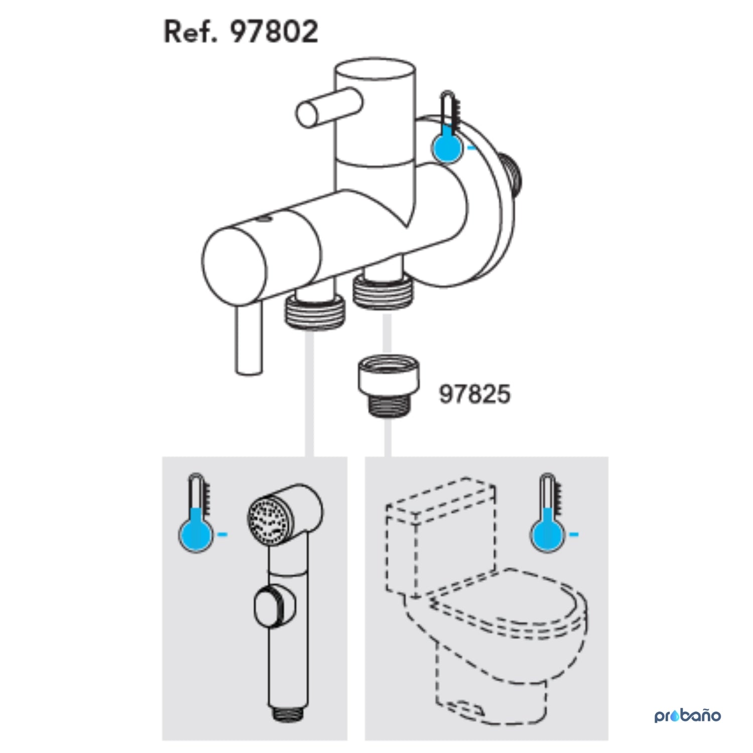 Ducha higiénica monomando empotrada, con salida a cisterna.