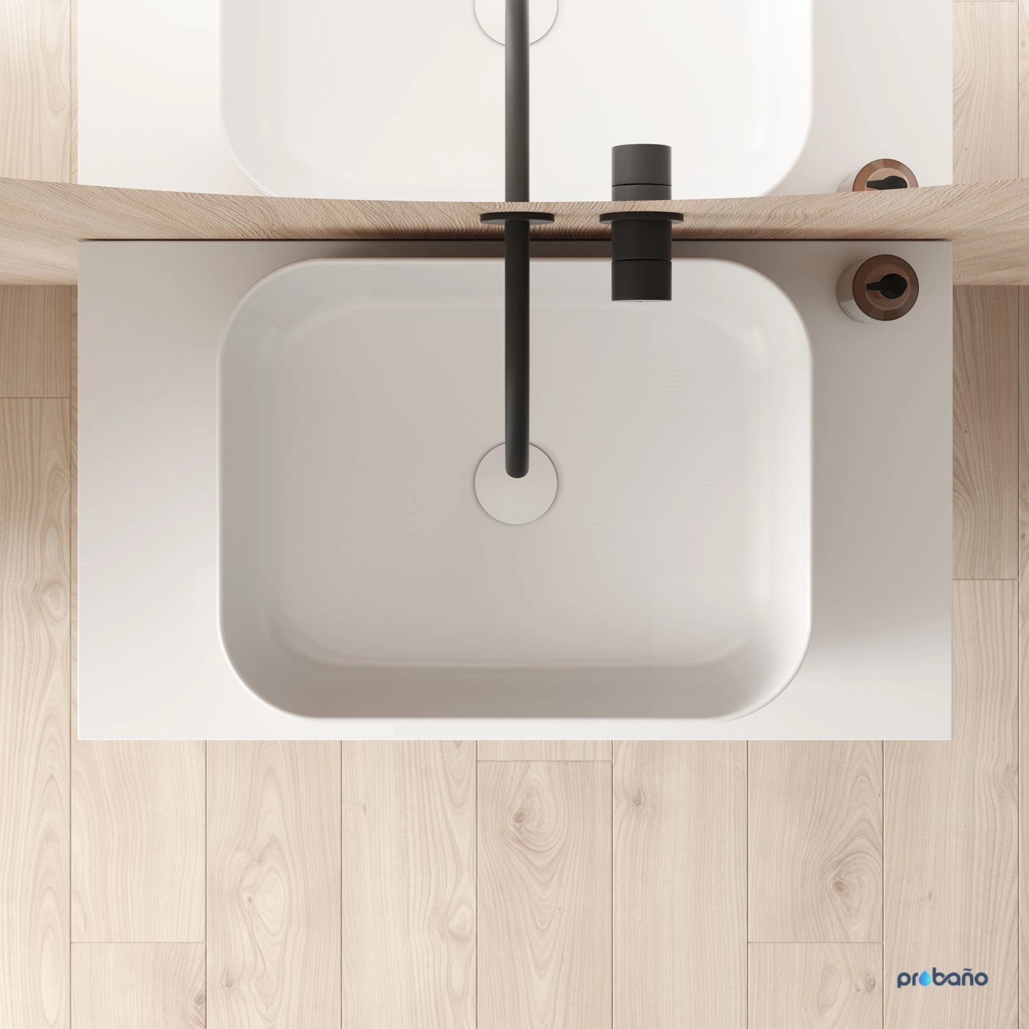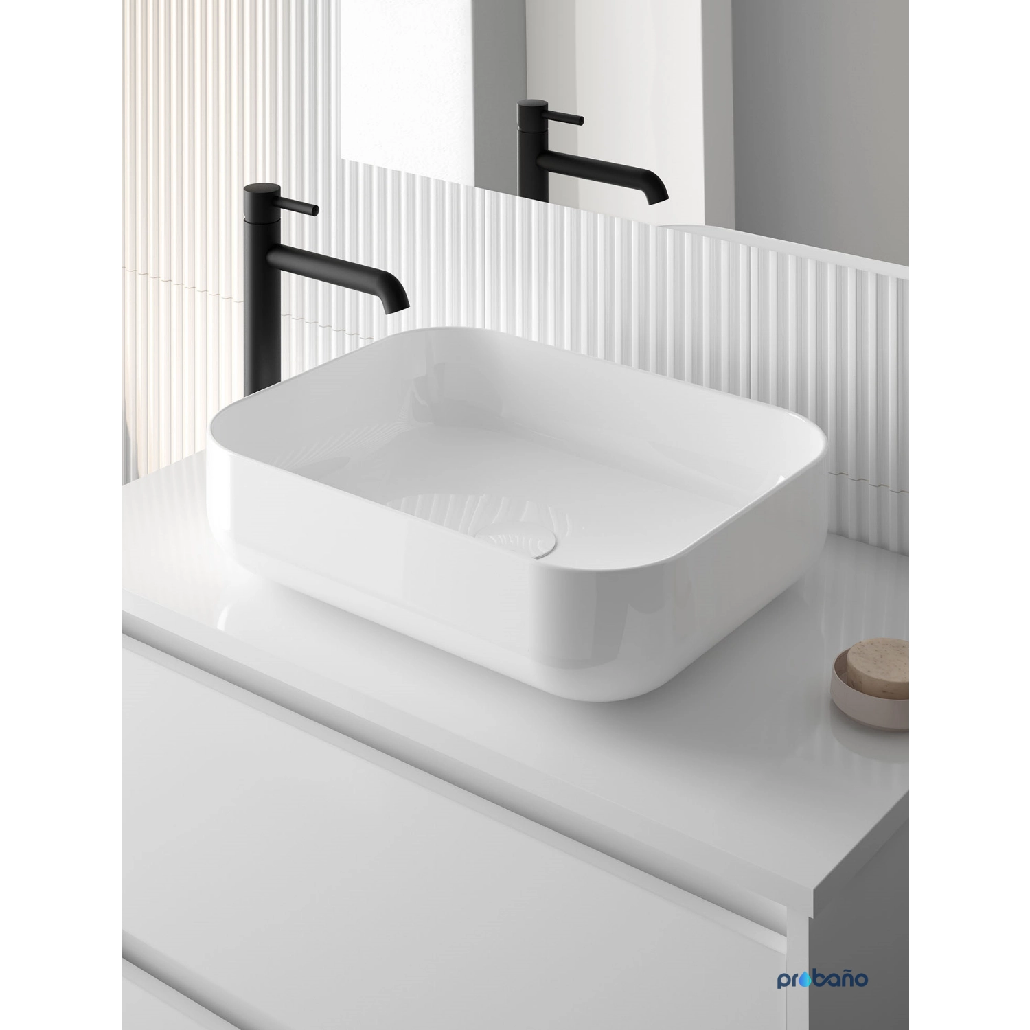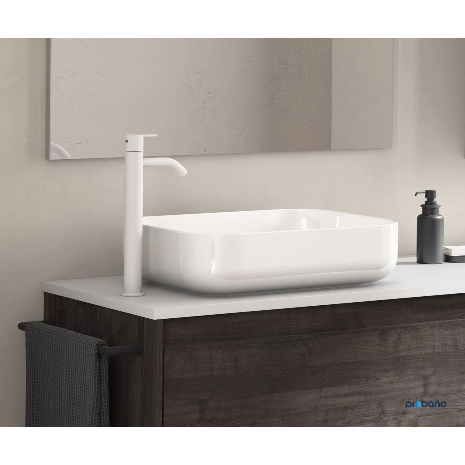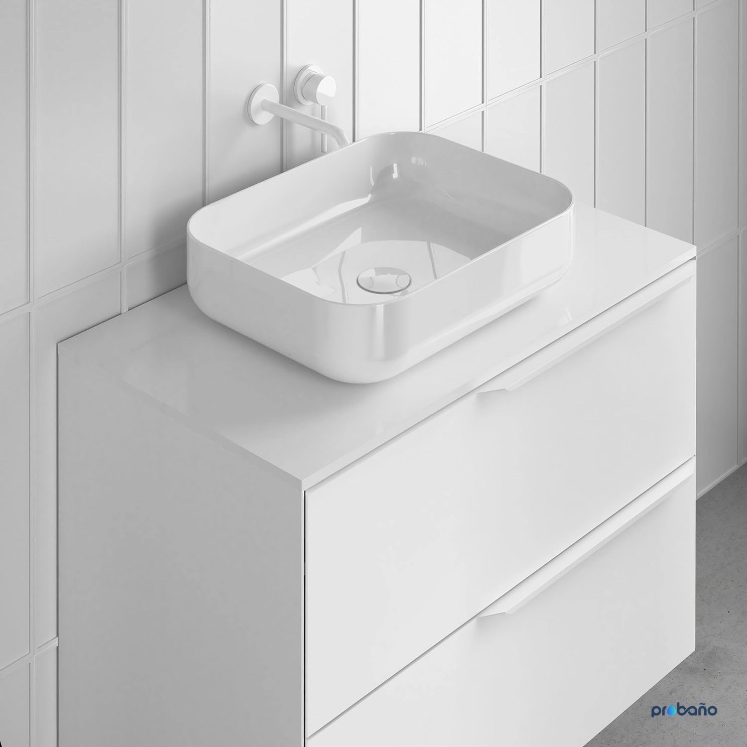 Lavabo cerámico sobre encimera en acabado Blanco Brillo.