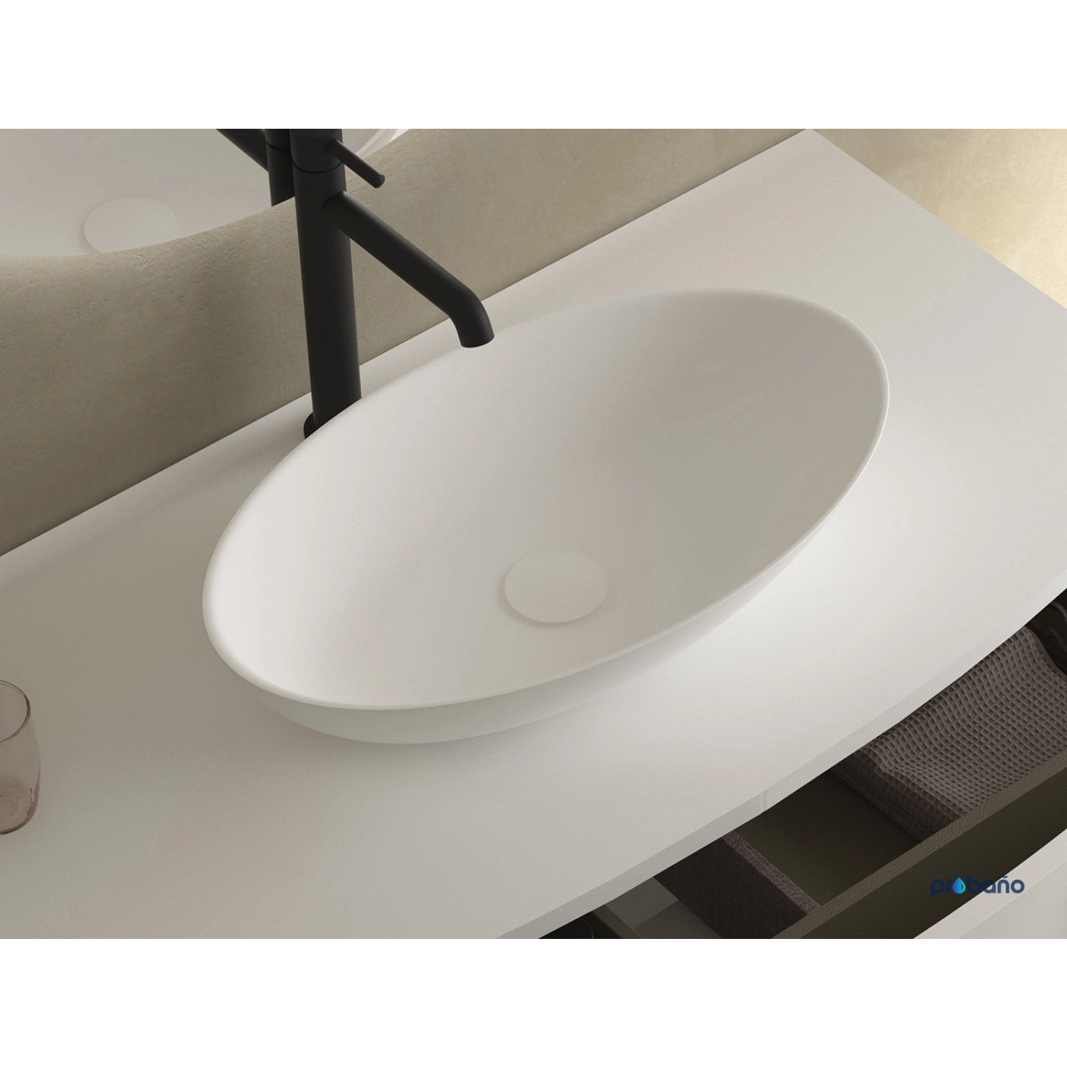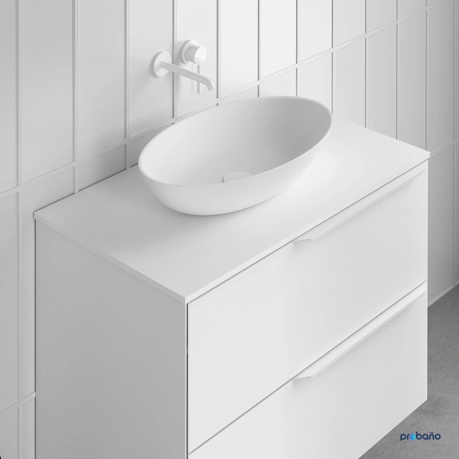 Lavabo Solid Surface sobre encimera en acabado Blanco Mate.